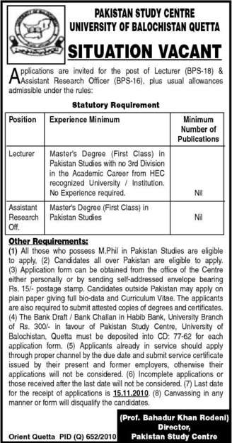 Apply as per details in job advertisement. Login to view further details of how to apply via https://www.jobz.pk online.