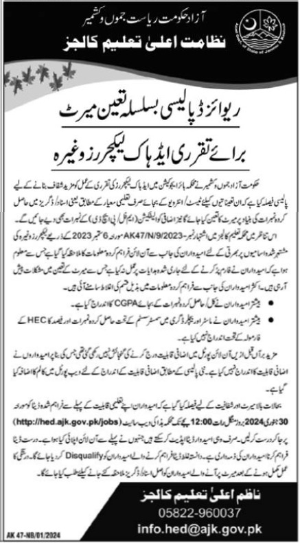 Directorate of Education Colleges is looking for candidates for following posts as per job advertisement published in daily Nawaiwaqt Newspaper of January 24, 2024 for location Muzaffarabad, muzaffarabad AJK Pakistan: