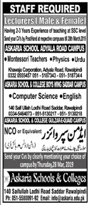 Vacancies in Askaria Schools & Colleges Advertisement March 2019