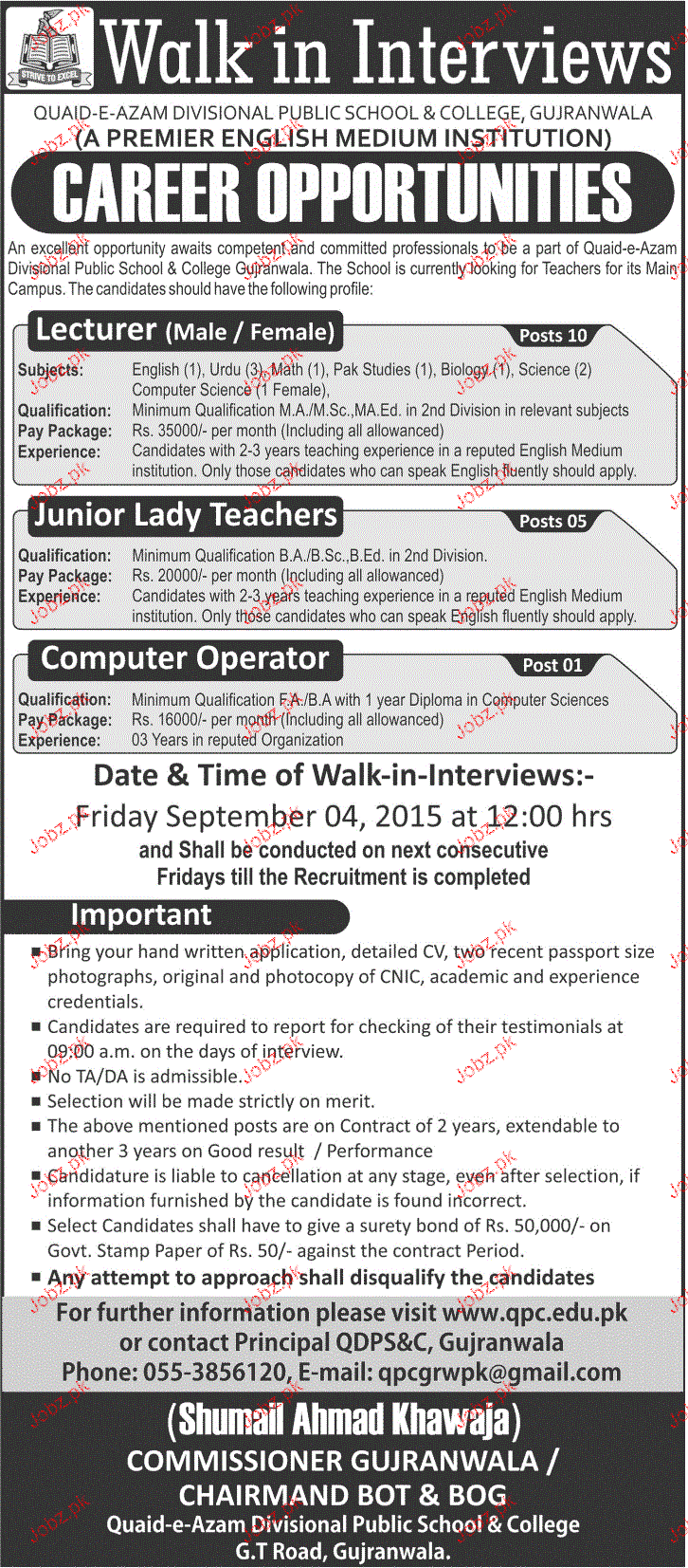 Apply as per details in job advertisement. Login to view further details of how to apply via https://www.jobz.pk online.
