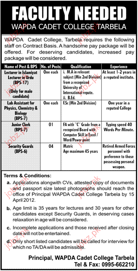 Apply as per details in job advertisement. Login to view further details of how to apply via https://www.jobz.pk online.