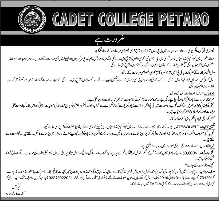 Apply as per details in job advertisement. Login to view further details of how to apply via https://www.jobz.pk online.