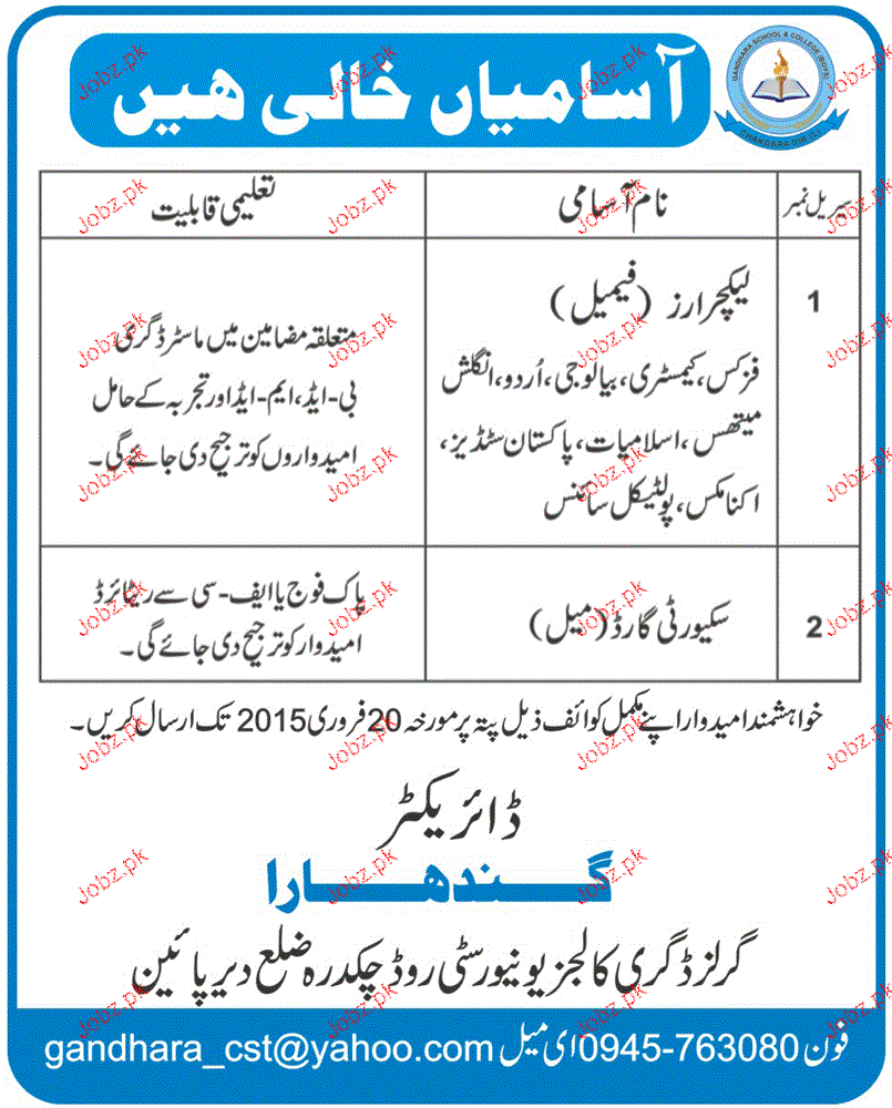 Apply as per details in job advertisement. Login to view further details of how to apply via https://www.jobz.pk online.