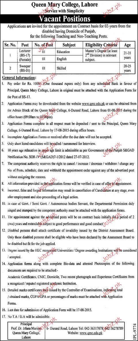Apply as per details in job advertisement. Login to view further details of how to apply via https://www.jobz.pk online.