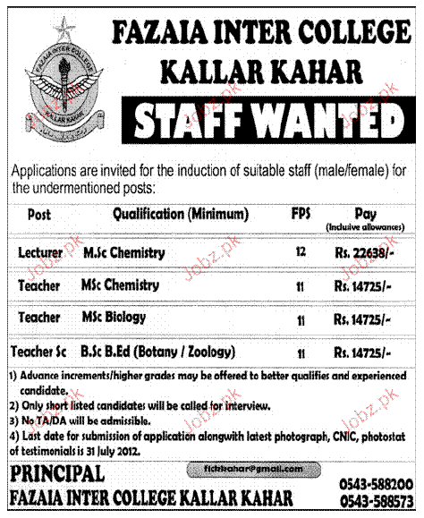 Apply as per details in job advertisement. Login to view further details of how to apply via https://www.jobz.pk online.