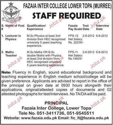 Latest Government Teaching Posts Murree 2025
