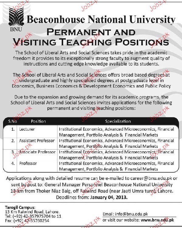 Lecturers, Assistant Professors, Professors Job Opportunity