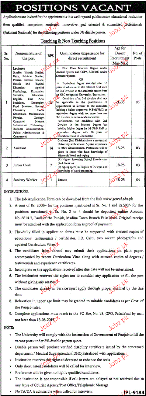 Apply as per details in job advertisement. Login to view further details of how to apply via https://www.jobz.pk online.