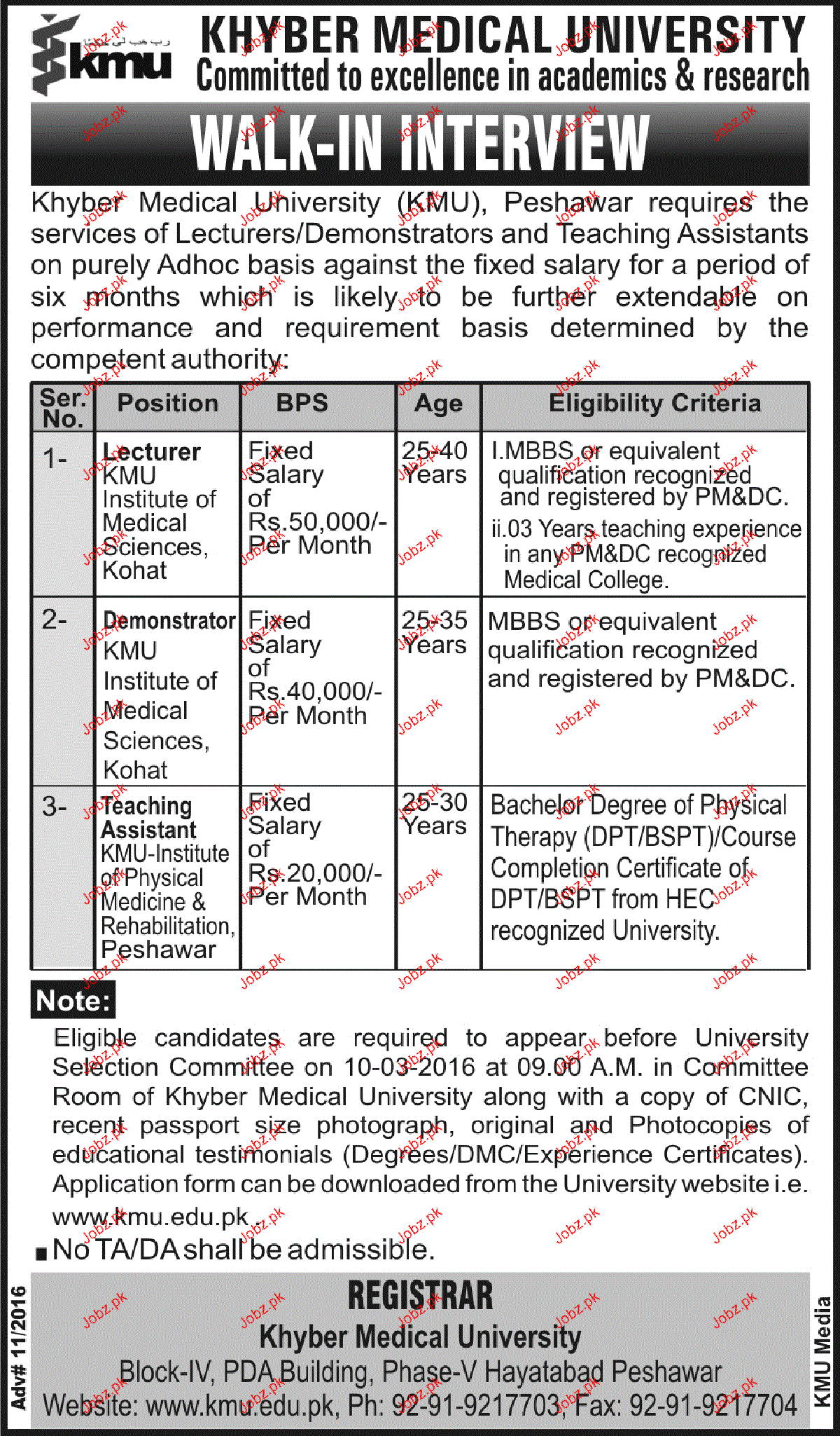 Apply as per details in job advertisement. Login to view further details of how to apply via https://www.jobz.pk online.
