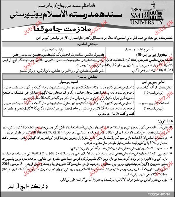 Lecturers, Deputy Controller of Examination Job Opportunity