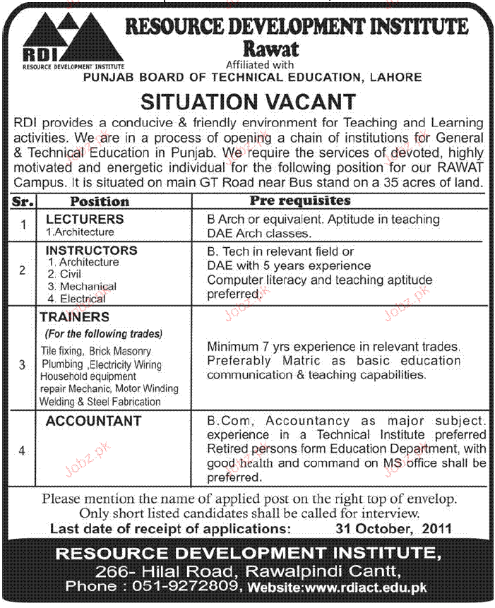 Latest Private Company Teaching Posts Rawalpindi 2025