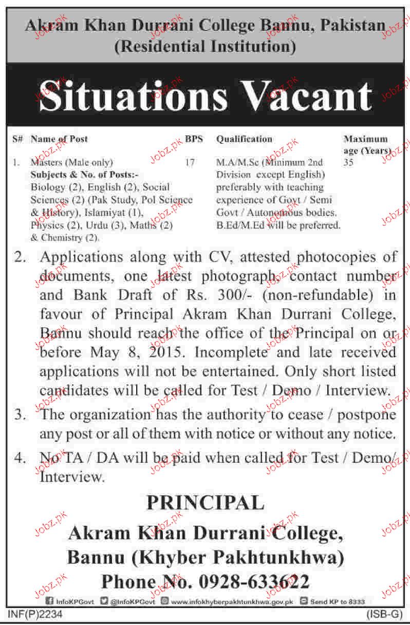 Apply as per details in job advertisement. Login to view further details of how to apply via https://www.jobz.pk online.