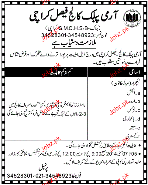 Latest Army Public School APS Teaching Posts Karachi 2025