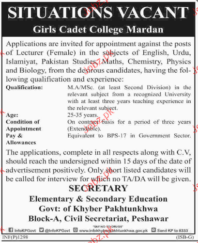 Apply as per details in job advertisement. Login to view further details of how to apply via https://www.jobz.pk online.