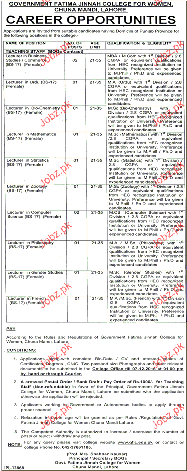 Apply as per details in job advertisement. Login to view further details of how to apply via https://www.jobz.pk online.