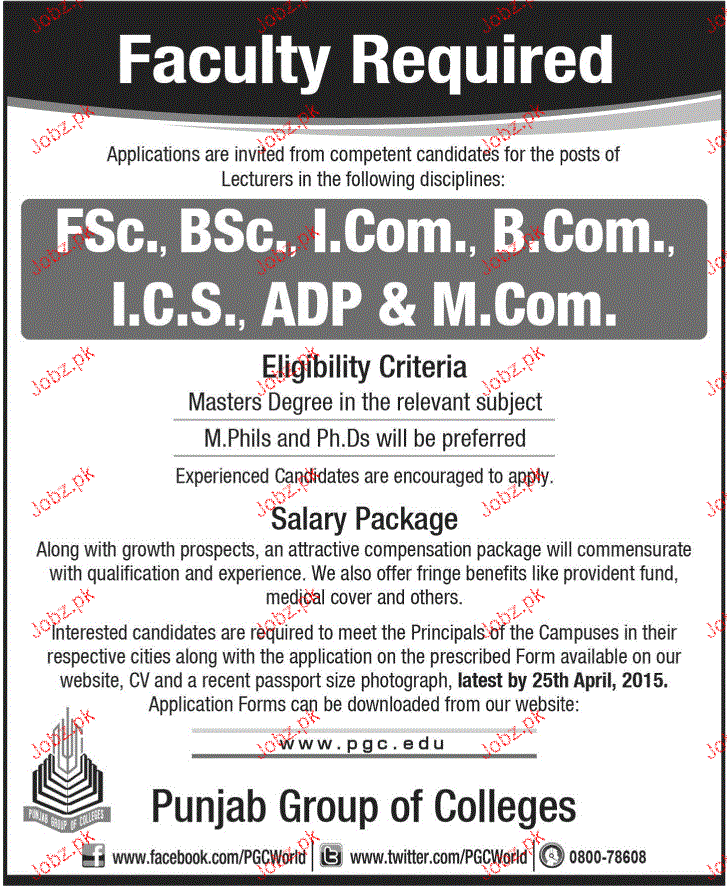 Apply as per details in job advertisement. Login to view further details of how to apply via https://www.jobz.pk online.