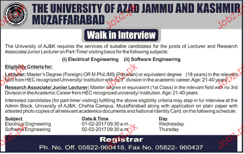 Lecturers Job In The University Of Azad Jammu And Kashmir