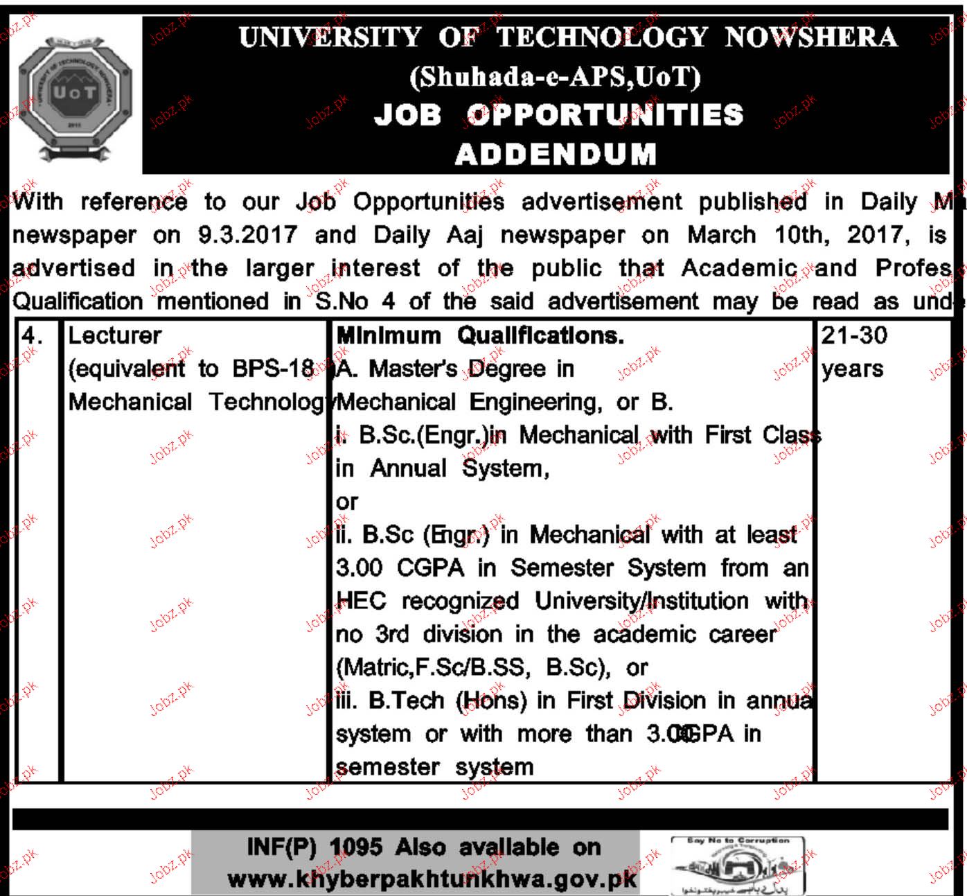 Apply as per details in job advertisement. Login to view further details of how to apply via https://www.jobz.pk online.