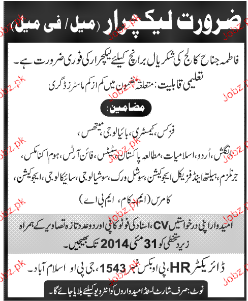 Apply as per details in job advertisement. Login to view further details of how to apply via https://www.jobz.pk online.