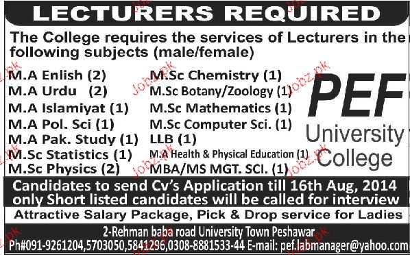 Apply as per details in job advertisement. Login to view further details of how to apply via https://www.jobz.pk online.