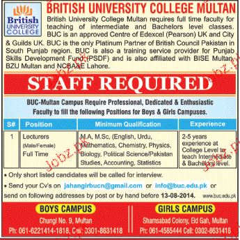 Apply as per details in job advertisement. Login to view further details of how to apply via https://www.jobz.pk online.