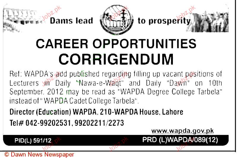 Apply as per details in job advertisement. Login to view further details of how to apply via https://www.jobz.pk online.