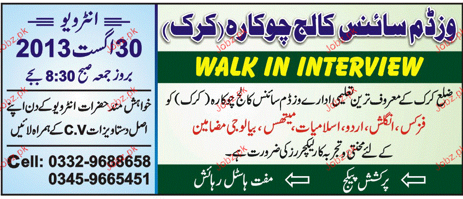Apply as per details in job advertisement. Login to view further details of how to apply via https://www.jobz.pk online.