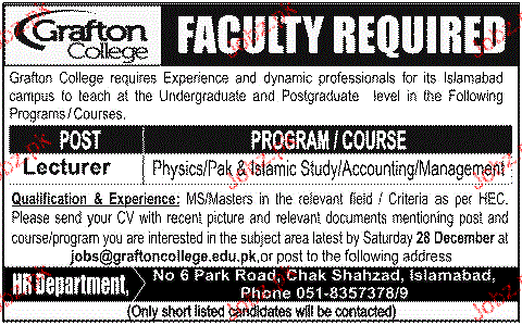 Latest Private Company Teaching Posts Islamabad 2025