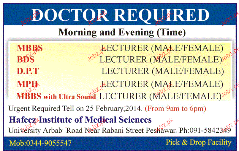 Apply as per details in job advertisement. Login to view further details of how to apply via https://www.jobz.pk online.
