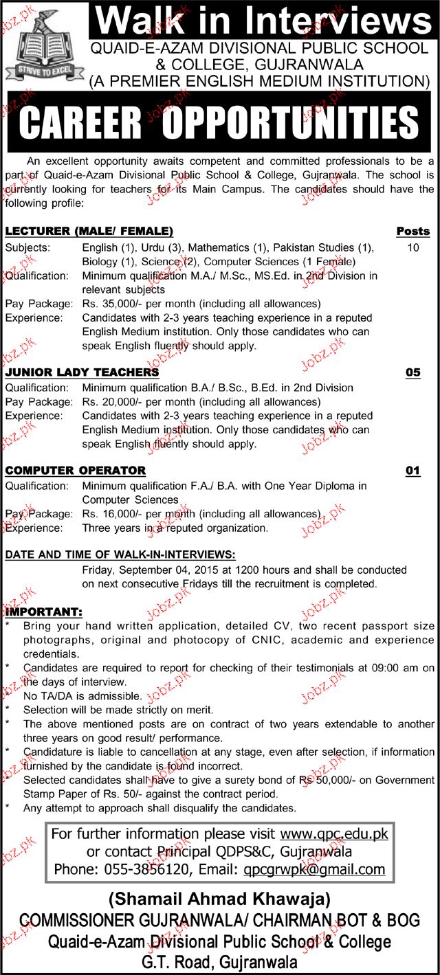 Apply as per details in job advertisement. Login to view further details of how to apply via https://www.jobz.pk online.