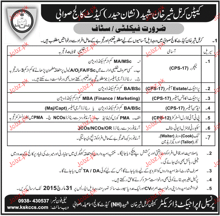 Latest Cadet College Teaching Posts Swabi 2025