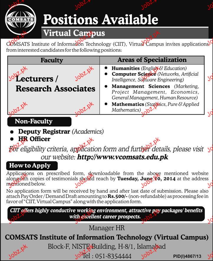 Apply as per details in job advertisement. Login to view further details of how to apply via https://www.jobz.pk online.