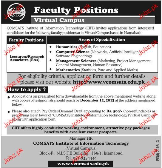 Apply as per details in job advertisement. Login to view further details of how to apply via https://www.jobz.pk online.