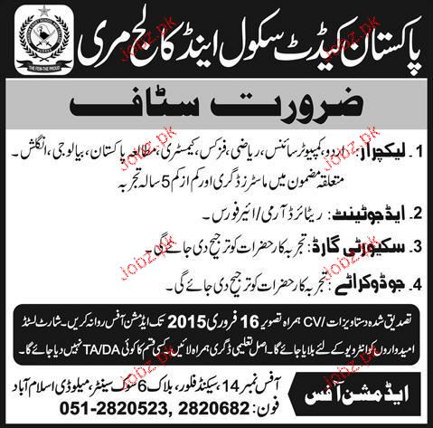 Lecturers, Security Guards Job In Pakistan Cadet School