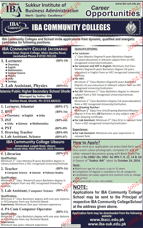 Apply as per details in job advertisement. Login to view further details of how to apply via https://www.jobz.pk online.