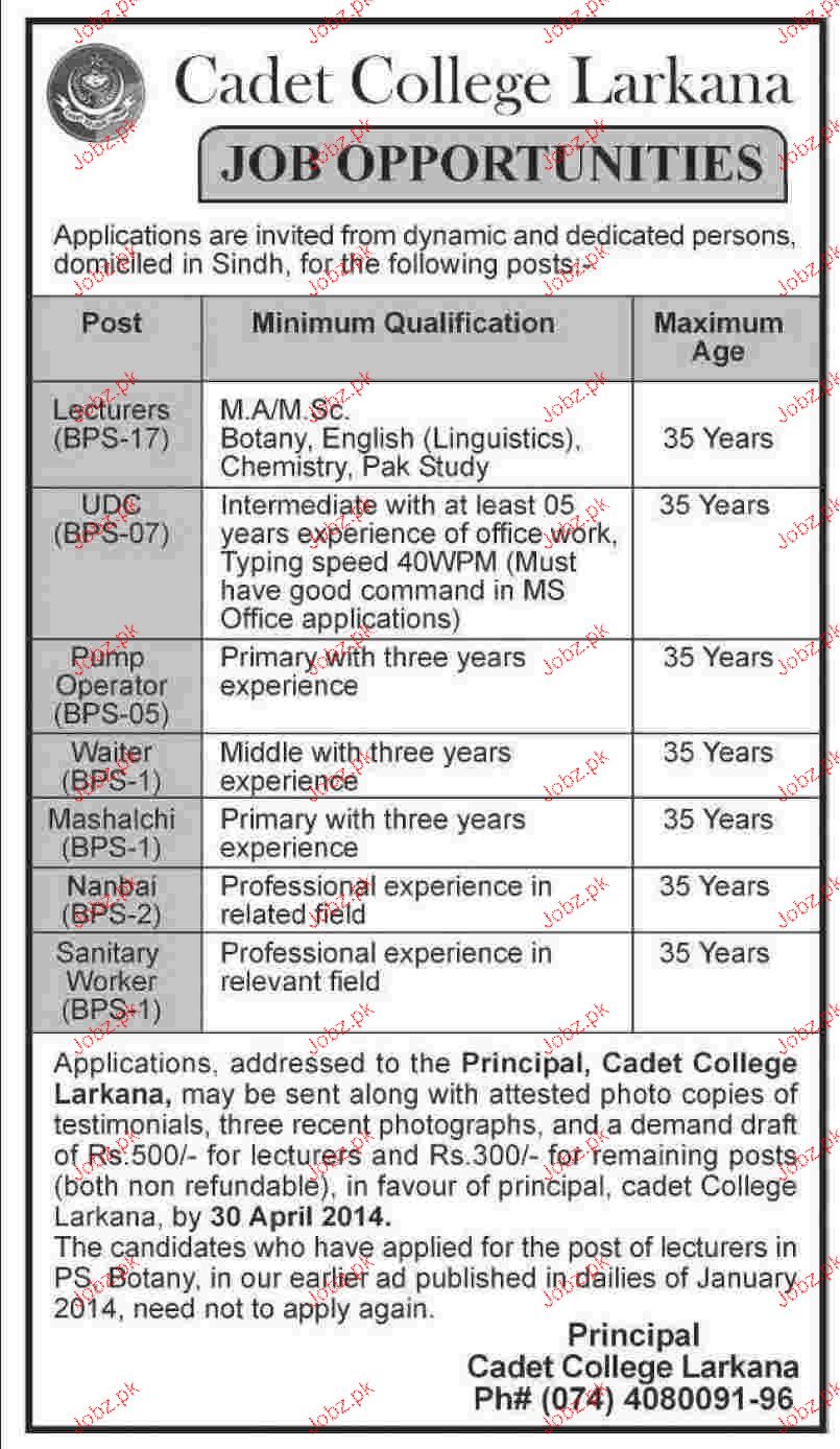 Lecturers, UDC, Pump Operators Job In Cadet College Larkana