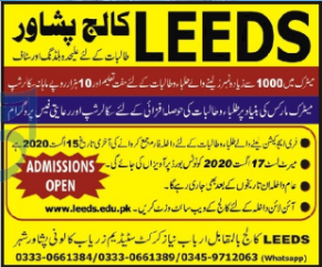 Leeds College invited applications from interested and suitable candidates for admissions in Intermediate / 1st Year in Peshawar City Khyber Pakhtunkhwa 2020. Read newspaper ad for exact details.