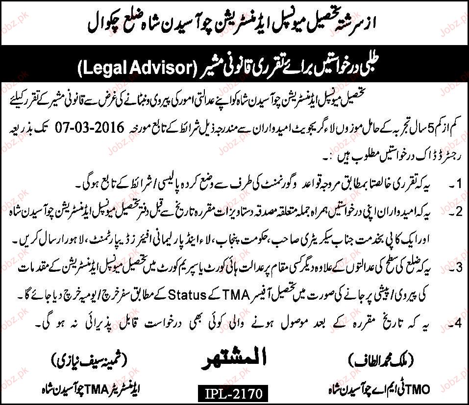 Legal Adviser Job In Tehsile Municipal Administration