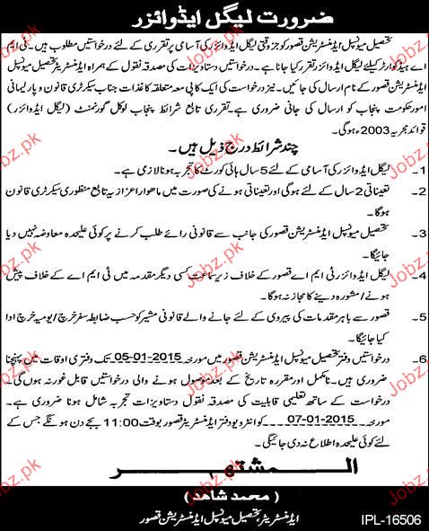 Legal Advisers Job in Tehsile Municipal Administration