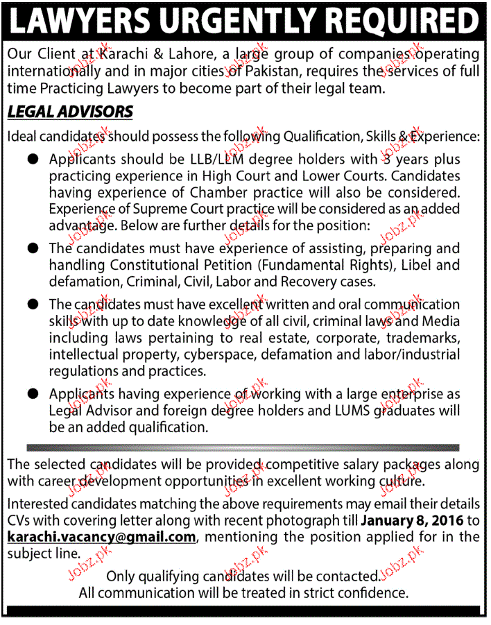 Apply as per details in job advertisement. Login to view further details of how to apply via https://www.jobz.pk online.