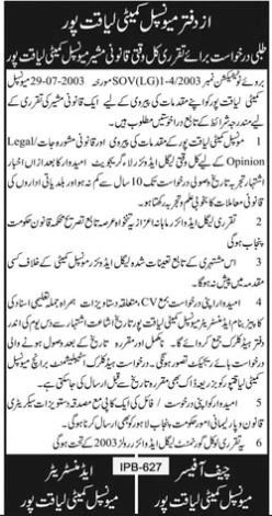 Legal Advisor Job At Municipal Committee Liaqatpur