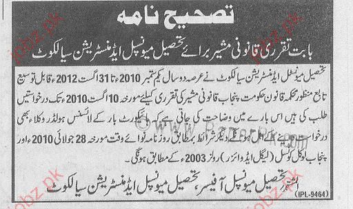 Legal Advisor Job Opportunities In TMA Sialkot
