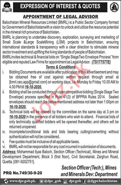Legal Advisor Jobs In Balochistan Mineral Resource BMRL