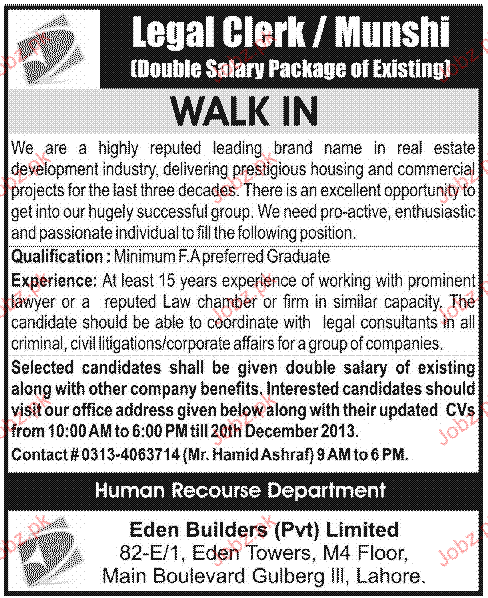 Legal Clerks / Munshi Job Opportunity