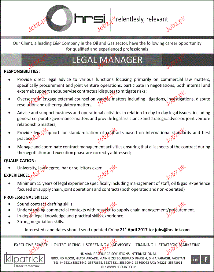 Apply as per details in job advertisement. Login to view further details of how to apply via https://www.jobz.pk online.
