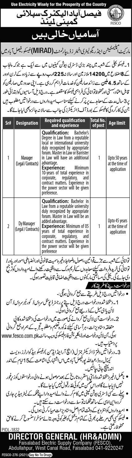 Legal Manager Jobs In Faisalabad Electric Supply Company