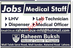 LHV, Dispensers, Lab Technicians And Medical Officers Wanted