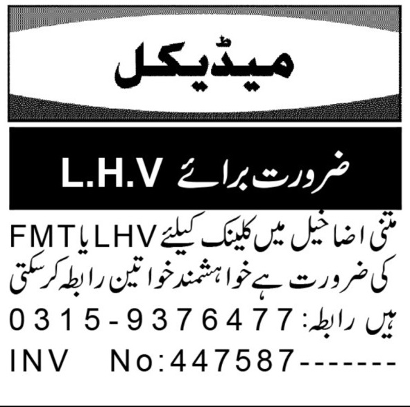 LHV & Female Medical Technician Jobs 2025 in Peshawar
