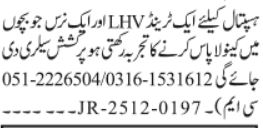 Hospital Clinic is looking for candidates for following posts as per job advertisement published in daily Jang Newspaper of December 6, 2025 for location Islamabad, islamabad Islamabad Pakistan: