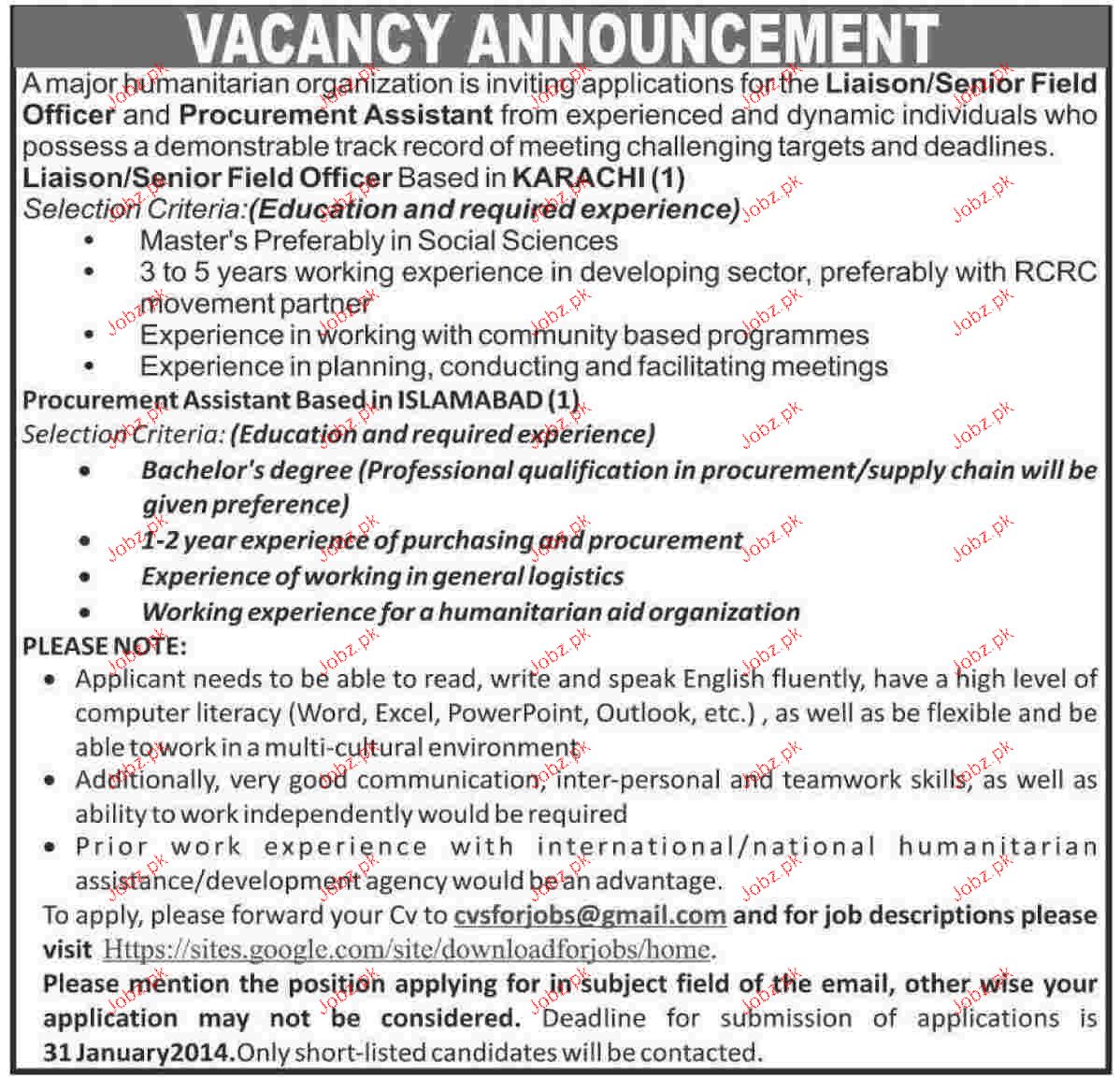 Apply as per details in job advertisement. Login to view further details of how to apply via https://www.jobz.pk online.